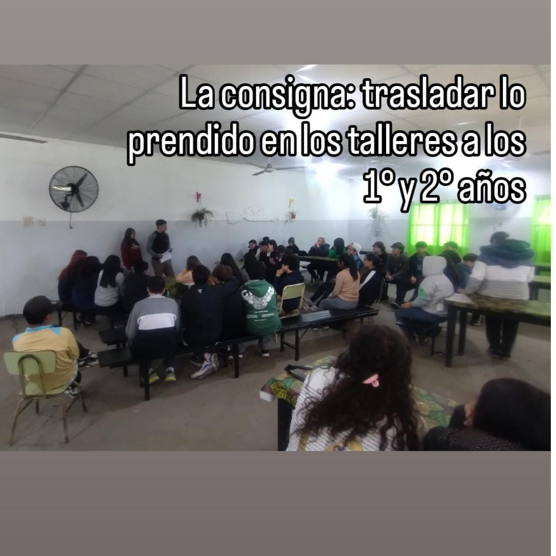 Los coordinadores del taller son algunos alumnos de 3° año, que se mostraron predispuestos a llevar adelante el orden y el liderazgo frente a sus propios pares.