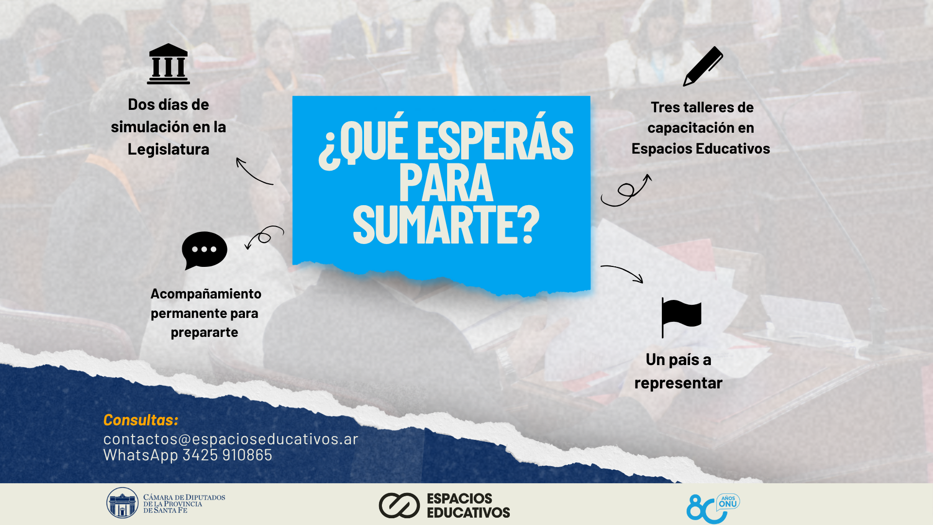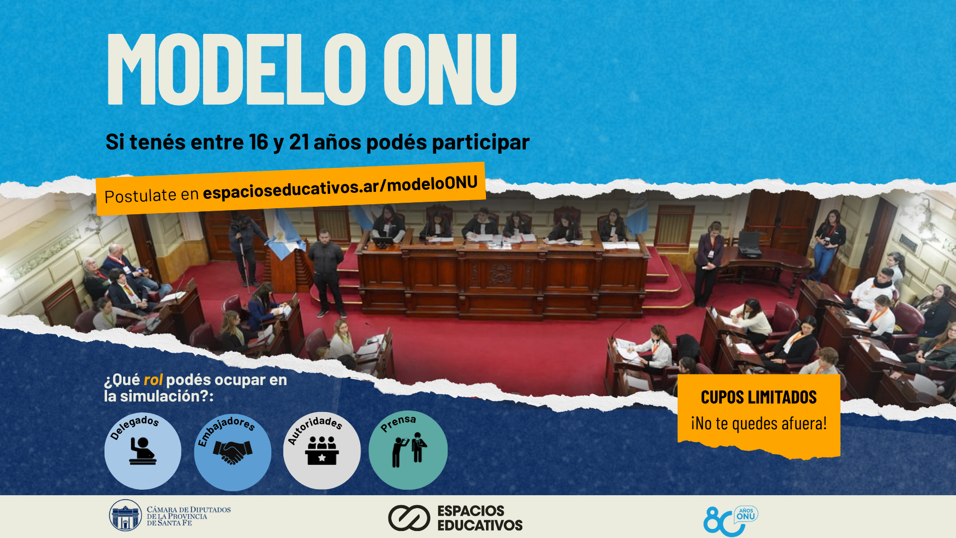 Desde Espacios Educativos junto con la Honorable Cámara de Diputadas y Diputados de la Provincia de Santa Fe llevaremos a delante el Modelo de Simulación de la Organización de las Naciones Unidas (ONU).